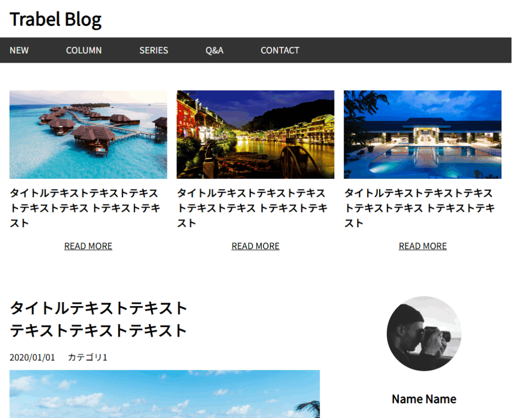 旅行系ブログ風のWEBサイトです。ネット上で配布されているカンプデータをもとに作成しました。